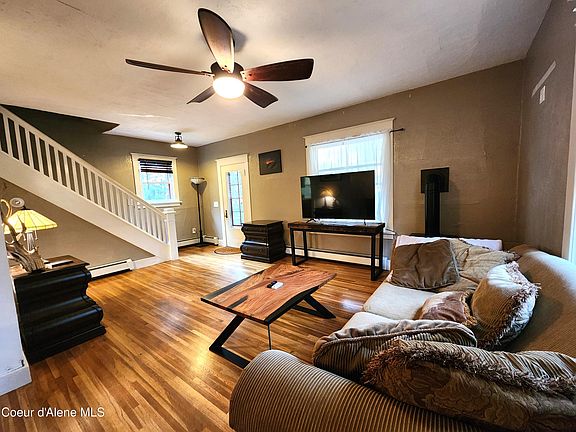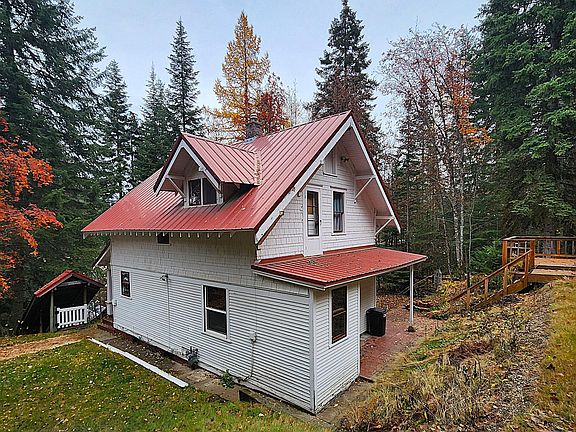 This charming home is nestled in the trees, secluded but overlooking Historic Downtown Wallace. Situated on an unheard of 12 city lots, this property has space for all of your needs. Whether it's a fire pit and seating for outdoor gatherings, putting a hot tub on the existing deck or building a shop, this home fits the North Idaho lifestyle. The inside the home has many custom touches and a warm and inviting atmosphere. Currently set up as an air bnb, the home is move in ready! Seller will consider selling the home furnished.