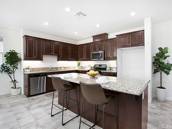 Welcome to 422 Maravilla Lane, a beautifully maintained 2-bedroom, 2-bathroom condo located in the heart of Brea’s highly desirable La Floresta community. Recently built and thoughtfully designed, this elegant single-level home features an open floor plan with tile flooring throughout the main living areas and new carpeting in both bedrooms. Situated on the top floor, the home offers elevated views of the neighborhood and sparkling city lights. The living spaces are warm and inviting, filled with natural light from plenty of dual-pane windows strategically placed throughout the home to enhance brightness and energy efficiency. The chef-inspired kitchen showcases granite countertops, stainless steel appliances, beautiful deep brown cabinetry, a built-in pantry area, and a large center island with bar seating—ideal for both entertaining and everyday living. Step outside to a private covered balcony, offering a peaceful outdoor escape that can be enjoyed year-round. The primary suite features a spacious walk-in closet, dual sinks, and a spa-style step-in shower. The secondary bedroom is conveniently located near a full bathroom with a shower/tub combo, making it perfect for guests or family. Additional highlights include built-in hallway cabinetry for added storage, a private detached garage with potential for more storage space, and elevator access to the top floor for added convenience. The home has been meticulously maintained and is move-in ready. Residents of La Floresta enjoy resort-style amenities including a pool, spa, clubhouse, BBQ areas, fire pit, splash zone, and scenic walking trails—all just steps from The Village at La Floresta, coffee shops, grocery stores, parks, top-rated Brea Olinda schools, and premier shopping and dining. Schedule your private tour today!