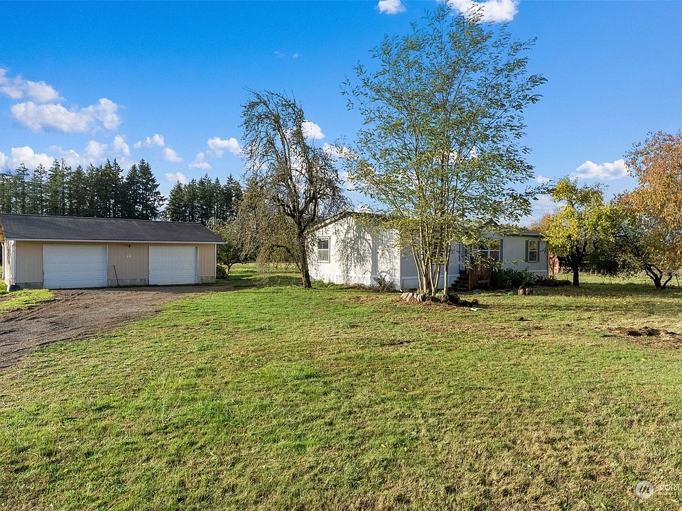Great location for country living! 3 bedroom, 1.75 bath home, spacious living room, kitchen and dining area. A little TLC and this place will shine. Detached 2 car garage, 4.85 acres, flat useable pasture land. A short drive to lakes, rivers and recreation. Centrally located between Seattle and Portland and just minutes to I-5 access.
