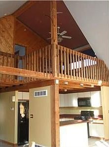 Cozy log cabin featuring exposed wood throughout! Skylights & walls of windows! Magnificent stone fireplace in 2 story great room; open stairway & loft! Rec room w/newer carpet. Wraparound deck & screened porch. Nestled on wooded lot on dead end street. Newer roof, hot H2O tank, kitchen appliances, & tile in mstr bath.