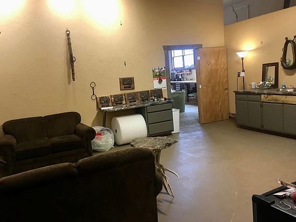 This very large metal shop/warehouse/apartment is phenomenal! The front shop and the second bay total 5000 square feet. The huge veranda is an added bonus! The entire shop has three-phase electricity. There is a large 12 ft. garage door, allowing for easy entrance into the main building The property has a huge lawn area, with a drive around loop and unlimited parking spaces. The entire shop is painted on the inside. This property offers two offices, a lobby, one lovely kitchen/breakroom and two bathrooms. The apartment is a one bedroom with a beautiful fireplace, hot tub and patio. We are offering this rental property for a great price! You may rent the front two sections for $2800 (5,000 sq. ft.) and the back apartment (1800 sq. ft. ) for only $1400.00.