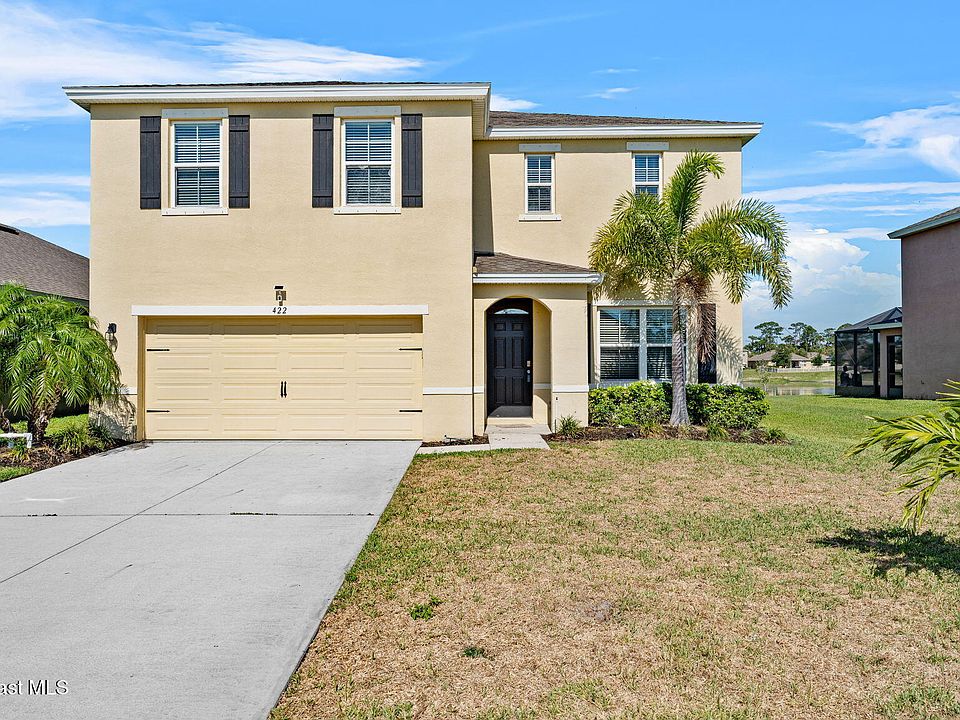 Move-in ready beautiful 3-bedroom, 2.5-bathroom plus a loft and bonus room downstairs lakeview home in a gated community in Palm Bay, FL. This freshly updated residence features brand-new carpet and fresh interior paint, creating a bright and inviting atmosphere. Upstairs, you'll find all three spacious bedrooms along with a versatile loft space—perfect for a home office, playroom, or second living area. The open-concept floor plan downstairs offers seamless flow between the living, dining, and kitchen areas, ideal for entertaining. A bonus space on the lower level provides additional flexibility for a home gym, media room, or guest quarters. Step outside to enjoy a large backyard with peaceful lake views—an excellent space for relaxing or hosting gatherings. Located in a secure, family-friendly community, this move-in-ready home combines comfort, functionality, and scenic charm. Don't miss your opportunity to make this exceptional property your own! Schedule a private showing today