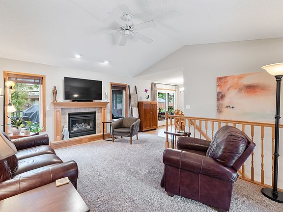 Gas fireplaceWet bar areaFinished lower levelRoomy rec spaceVaulted ceilingsLarge flat backyardFourth bedroom