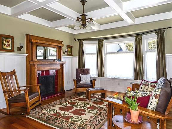 Character and quality rarely seen. Inlayed flooring, period lighting fixtures and wall paper, boxed beamed ceilings and custom cabinets. Breakfast nook, bay view with private patio and tons of extra storage in the basement. Ideal location close to town, schools and the bay.