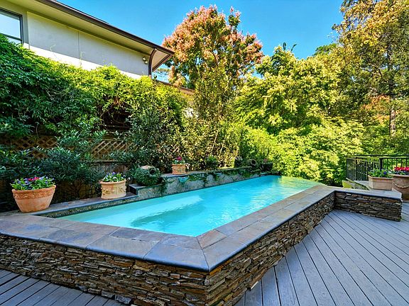 Private poolSophisticated walnut barSummer kitchenBackyard oasisAbundant natural lightVersailles-patterned porcelain tile floorsHigh-end designer finishes
