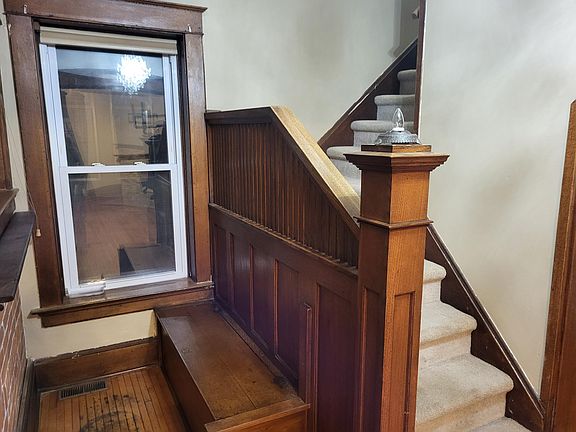 Centrally located and well maintained 2 story home close to Blessing Hospital and QMG. NEW HVAC and water heater 2023. 2 large bedrooms and smaller third room "nursery or office" could be used as a bedroom, 1 half bath main floor, one full 2nd floor bathroom. Beautiful hardwood flooring, woodwork, pocket doors and fireplace on main level. Kitchen is furnished with dishwasher, garbage disposal, fridge, over the range microwave, and range/oven. Covered front porch, TWO paved patios in the backyard. Fenced in yard, carport with dead end alley access plus additional parking in front. Unfinished basement for additional storage and washer and dryer hook-ups. More photos will be uploaded once vacant. Taking applications now. Pets negotiable. Off street parking. Carport.