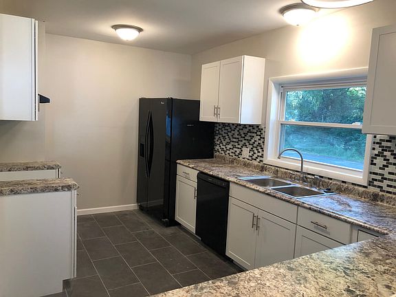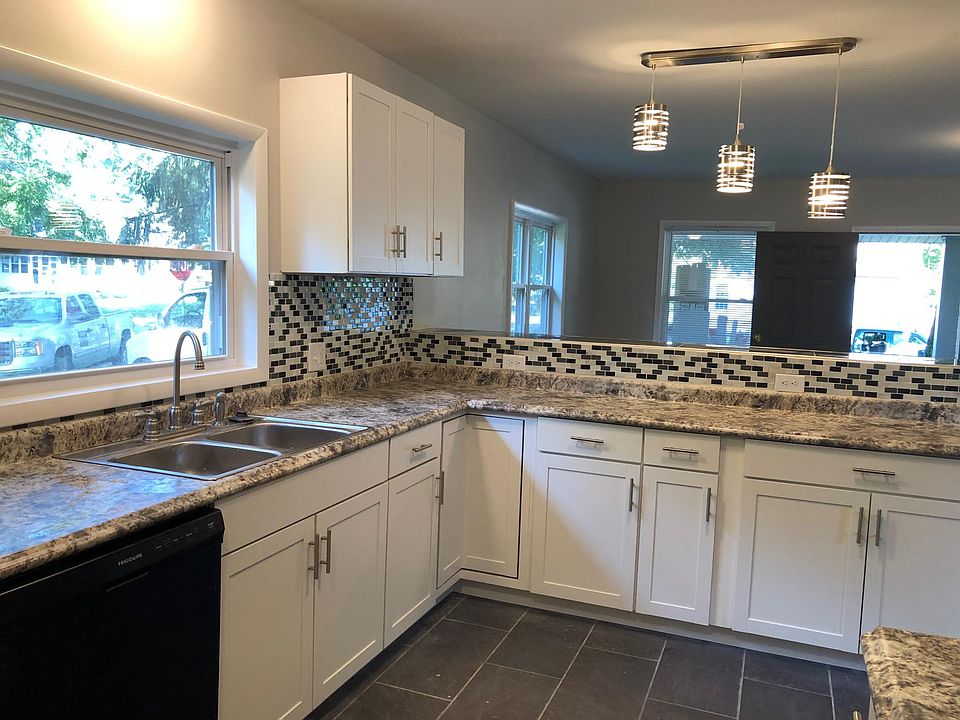 This 6 bedroom home has just been totally renovated with a modern feel. The home has 3 full bathrooms. The new kitchen has ceramic tile flooring, granite-like countertops with bar, tile backsplash, new black appliances (including dishwasher, stove, side by side fridge). Two of the bedrooms have french doors leading to private decks! Each room is large. There is a large front porch, full basement (unfinished), and ample parking on the property.