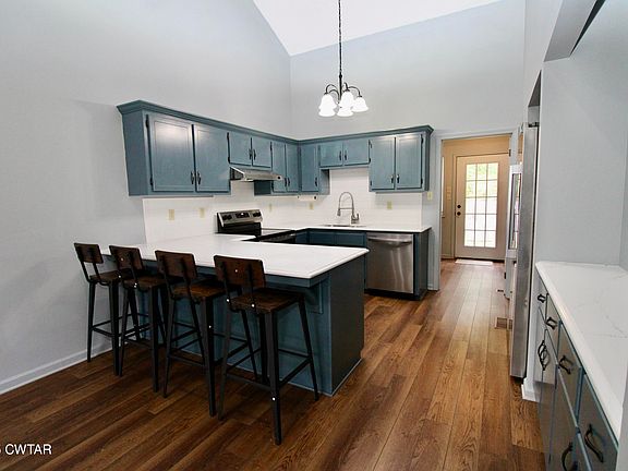 Like New & Full of Charm! This cozy 3-bedroom, 2-bath home feels brand new! The bright eat-in kitchen features quartz countertops, stainless appliances, a stylish coffee bar, and a roomy pantry—perfect for everyday living and entertaining. An oversized laundry room with a convenient bathroom adds extra functionality, while the back patio offers a peaceful spot to relax and unwind. Plus, enjoy the convenience of an attached garage. Fresh, modern, and move-in ready—this one checks all the boxes! Located between Memphis and Nashville, close proximity to Natchez Trace State Park. Convenient to shopping, schools, city park, and I-40,