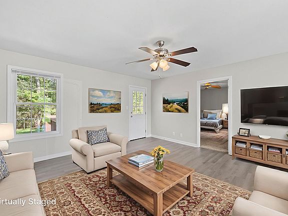 The spacious primary bedroom offers its own full bathroom, while two additional bedrooms and another full bath are conveniently located across the living room.