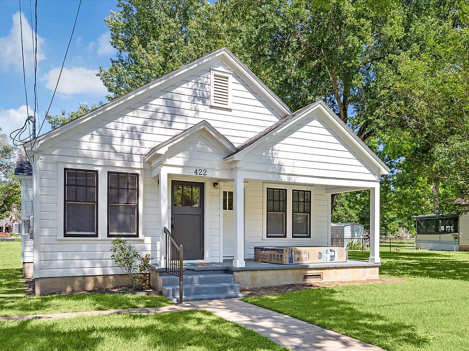 Welcome to this charming 2-bedroom, 1-bath home. Step inside to discover a cozy retreat boasting beautiful hardwood floors throughout the living areas and bedrooms, adding warmth and character to the space. The kitchen welcomes you with open spaces above the cabinets, perfect for displaying your favorite decor or adding a personal touch. This home has been lovingly maintained, radiating a sense of cleanliness and care. Outside, you'll find a large fenced yard offering ample space for outdoor activities, gardening, or simply unwinding in the fresh air. Included for your convenience are a refrigerator, washer, and dryer, ensuring that your transition into this inviting home is seamless. Move in ready. Don't miss out on the opportunity to make this cute and well-maintained home yours. Schedule a viewing today and envision yourself living in this delightful retreat!