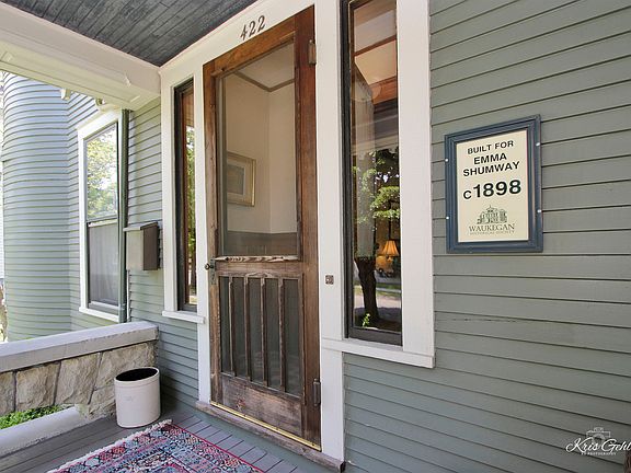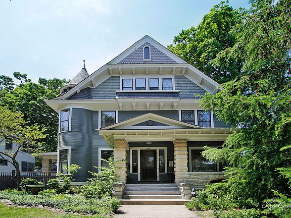 This outstanding Victorian, Queen-Anne style home is ready for its next owner(s)! So lovingly cared for & improved by the current owners, you will feel the warmth the moment you enter! A large front porch (22 x 8) greets you - imagine relaxing here on Summer nights! Enter the stately front door to an energy saving vestibule then on thru the main door w/beautiful Luxfer prism glass insert. The spacious center hallway offers a perfect spot for displaying artwork, or add some bookcases, a few occasional chairs. The living room includes a bay window (turret) & opens to the reading room/den & view of the center fireplace (now decorative only w/a Victoriain gas Humphrey Radiant Fire insert to possibly hook up?). An exterior door leads to a 2nd covered porch (14 x 10) and access to the fully fenced side/back yards -- Beautiful landscaping here & surrounding the home! The main floor family room is quite spacious & a perfect spot for cozying up for movie night. Notice the beautiful built in cabinet here (likely a formal dining room in prior years). This room could also be a main floor bedroom if needed w/the easily accessible full bath nearby. The kitchen is a fun space with all you need - a high-grade Viking oven/range, large pantry closet, table space, 2 large windows to let in morning sunshine, & easy access from the rear door for loading & unloading groceries, etc. Wander back to the formal dining room & up the beautiful custom-built oak staircase w/a beautiful leaded glass window sourced from a Central Illinois church & boasting a flash glass floral perimeter. The spacious 2nd floor landing leads to 4 bedrooms (one now used as office), the large dressing room/walk-in closet (could add 2nd floor laundry here? - plumbing at sink) & the 2nd full bath. All bedrooms decent-size, bright & sunny. Extra closet space in hallway & that large dressing room! Interior stairs lead to huge 3rd floor attic w/so many possibilities to finish into play area for the children, an artist loft, primary bedroom expansion - ?? - you decide! Sellers added quality rock wool insulation to floor of the attic for extra energy efficiency! Back through the walk-in closet is the rear "Chicago-style" porch leading to a clean basement w/laundry room, multiple work areas, the mechanicals. Newer gas valve & control box for the boiler. 200 amp electric w/2 panels. Majority of plumbing has been updated to copper. "Half" bath/extra commode also here. Last, but definitely not least is the newly built garage (apx 10 yrs) measuring 24 x 24 w/walk up stairs to 2nd floor loft, a versatile area for whatever you could imagine! This home is an architectural gem boasting many original details (turret, steep roof, heavy stone porches, hardwood floors & trim) plus the added quality features done by one of the sellers as an expert woodworker. All this and located near Lake Michigan & Waukegan's beautiful beaches, the Genesee Theatre w/many great shows, very close to the train station for easy commuting - see this one soon!