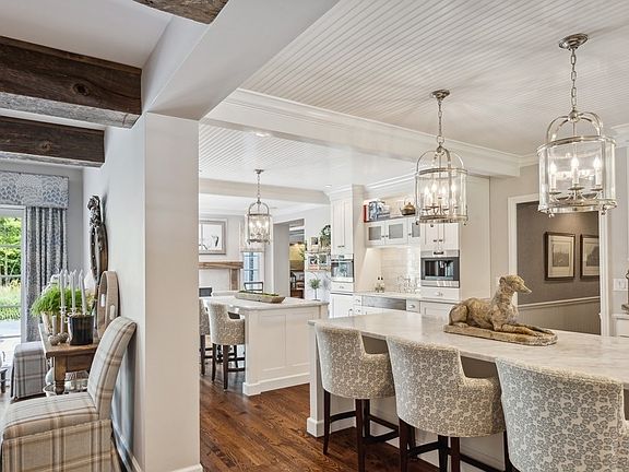 A Labor of Love project, this designer-owned home has been magnificently restored and meticulously updated to deliver the most luxurious ranch living on the North Shore. Complemented by an incredible custom carriage house, this property offers estate living on an acre of totally private, beautifully manicured pastoral grounds designed and maintained by Midwest Arbor. "White Glove" from start to finish with an exquisite level of craftsmanship in every detail, one-of-a-kind accents include antique moldings & ceiling beams relocated from Wisconsin farms & country estates, detailed built-ins to seamlessly blend in and of course the best of the best home "jewelry" from Rohl, Cowtan & Tout, Waterworks, Rocky Mountain, WOLF, Stark, Aerin Lauder, Hermes to name a few. The main house features 4 beds with 4 full baths, and 3 car attached garage. Stunning Chef's kitchen with Carrara marble counters, double island with breakfast bar seating, exquisite cabinetry w/ custom details and top-of-the-line integrated appliances arranged around an artistic fireplace crafted with a limestone surround and a fabulous rustic mantle made from restored barn beams. Off the pages of a design magazine, the attached family room blends coziness with large scale entertaining space complete with a wet bar fully equipped with a wine fridge, beverage fridge and a beer tap. French doors from the family room, kitchen and dining room welcome you to the outdoor oasis with a thoughtful outdoor entertainment space layered with natural, organic landscaping and a blue stone pebbled patio with many spaces to relax and enjoy the tranquil setting while grilling & entertaining. Continue inside to the intimate dining space with a custom built-in china cabinet and original rustic beams creating a beautiful, warm inviting space. Elegant living room features custom paneling, a fireplace w/ marble surround. 4 bedrooms in the main house, including the luxurious primary suite with marble bath spa bath, 2 large walk-in closets, and a dedicated laundry room. Three additional spacious bedrooms (4th bed used as exercise room now) and a well-planned mudroom with custom lockers, full bath, and 2nd laundry. Steps outside, the carriage house, designed as a converted barn, includes a double atrium loft, full bath, kitchenette, built-in bunk beds & open living and entertaining space. An incredible escape, party house, a private office or bunk house... this is truly a one-of-a-kind flex space to meet every need. From quiet relaxation to parties of 100, 422 Sunset Ridge defines the word "country elegance". Ralph Lauren meets Blackberry Farm!