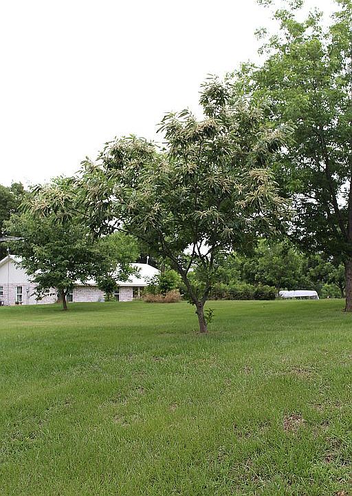 Energy efficient home built using ICF (insulated concrete form) construction. Home sits on 3 acres at road level then gently slopes to a creek bottom, with a small hobby pecan orchard, approximately 10 acres of improved variety trees, chestnuts, black walnuts, grapes and blackberries. Property has barbed wire fencing, two small ponds, pole barn, chicken coop, and raised bed gardens. Seasonal creek on property. 5x8 Storm Shelter beneath laundry area with in-house trap door entrance. New H-Loc metal roof installed 2023.