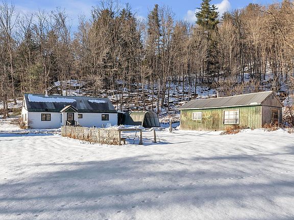 Convenient and affordable, this Middlesex home has a big 1.5+/- acre lot and is only 2.5 miles to Montpelier and even closer to Red Hen Bakery, Roots Market, The Filling Station Restaurant, Camp Meade and I-89 Exit 9. A simple design with large rooms including a living room with woodstove, eat-in kitchen, laundry room plus a three quarter bathroom and two bedrooms on the main floor. Upstairs two more rooms include a large room that might be a third bedroom and an adjacent study/studio/office space. A large attached carport is extended with a hoop structure and a separate shed, needs a bit of work.