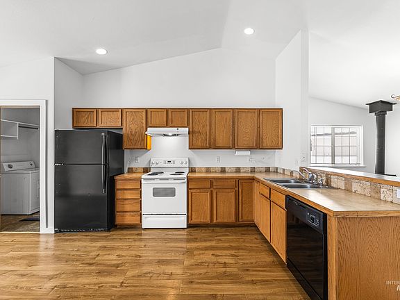 Super starter home with open floor plan, vaulted ceiling in kitchen, dining and living room. Lots of natural light inside. Fresh paint and new carpet. Easy walk to stores and K-8 grades. Large primary suite. Mud room off garage with washer (and dryer hook up). Raised garden beds in large yard facing south and west. 5 min from downtown and lake. What makes this property unique is it's size and the unobstructed views to the west.