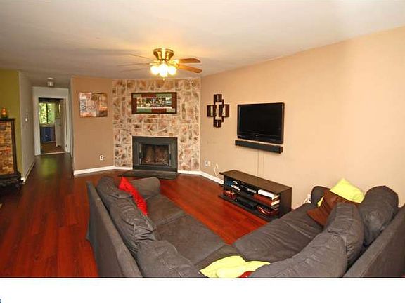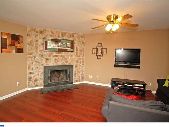 Enter into this beautifully maintained home with many lovely features and upgrades. The large formal living room features a wonderful wood burning fireplace to keep you warm on the cold Jersey winter nights accented by the full wall stone design and newer hardwood laminate flooring. Dining Room commands lots of natural light with large sliding glass window off to the relaxing balcony. Also featuring newer hardwood laminate flooring. The eat-in kitchen has been updated and ready for all your cooking and baking masterpieces with sleek granite countertops, under mount sink, newly updated fixtures and hardware. The spacious master bedroom suite is complimented with two large windows for plenty of sunlight, features an oversized walk-in closet with built-in organizers and a private master bath. Both master bath and main bath have been beautifully updated with all newer vanities, updated fixtures and modern ceramic tile flooring. The home features ceiling fans in every room to keep you cool on warm summer nights. This home includes the convenience of the washer and dryer in the unit. Close proximity to transportation, major highways and convenient to shopping. Green Remarks: Hvac system 3 years old.