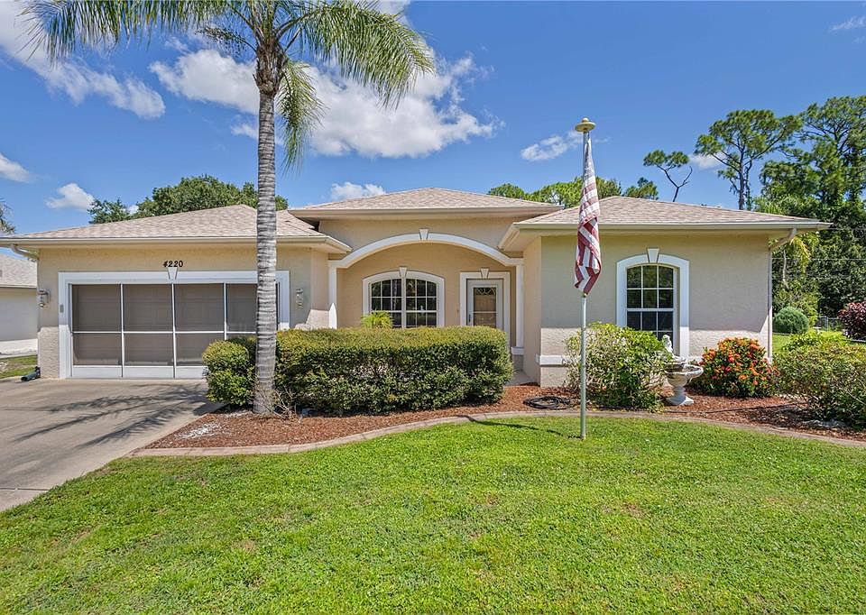 Discover your perfect home in this beautifully maintained 3 bedroom, 2-bath property boasting over 1,700 sq ft. of thoughtfully designed living space. The smart open layout features a convenient breakfast bar, cozy dinette and practical inside laundry area. Enjoy flexibility with a versatile office/den that adapts to your lifestyle. Step outside to the extended lanai (which is wired for spa), perfect for relaxing or entertaining and embracing classic Florida living. A bonus electric shed provides excellent storage or workshop opportunities. Plus a 1 year home warranty is included.