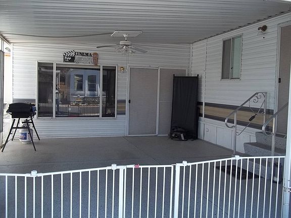 Located in a 55+ Community with Amenities, this Park Model has many great features including an Arizona Room, New King & Queen Bed, Stackable W/D, Reclining Sofas Recliner, Full Size White Appliances, Updated Laminate Floors, Gas Stove, Wi-Fi Thermostat, Satellite with Free Wi-Fi, New Hot Water Heater installed March 2025,Filtering Shower Head, Newly Painted and New Furniture, Privacy Screens , Sunscreens, Built-In Shed, Outdoor Living ,Vaulted Ceiling, Kitchen Skylight, 2024 New Central A/C & Heat vent to the AZ Room. Lot Rent is noted and billed monthly.