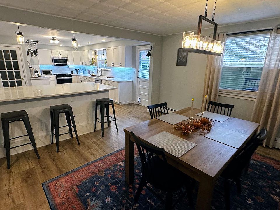 Charming Ranch-Style Sanctuary with Extensive Amenities. Discover the charm of this spacious ranch-style home, nestled on a tranquil, almost 3/4 acre lot. This residence offers an exceptional blend of comfort, space, and modern updates. The main level offers several entry-level bedrooms. The updated kitchen is a chef's delight, featuring Corian countertops, crisp white cabinets, stainless steel appliances, and a central kitchen island. Luxury vinyl tile extends seamlessly throughout the home. For cozy evenings, the interior is equipped with three additional heat sources: a wood-burning fireplace, a pellet stove, and a gas brick fireplace. The home features 5 spacious bedrooms and 3 full bathrooms, with the flexible option of a possible 6th bedroom. Versatile Lower Level with Separate Suite. The expansive lower level is a true bonus, offering a separate living area and a full kitchen and dining area. This level includes two additional bedrooms, two separate laundry areas, a game room, and an exercise/theatre room. The outdoor oasis begins as you step outside to your sanctuary, surrounded by mature trees . The exterior is designed for ultimate enjoyment and entertaining: Paved Driveway accommodates parking for up to 6 vehicles. Outdoor Kitchen/Grill Area: featuring a fantastic 21' x 14' screened-in outbuilding with electric, perfect for grilling and outdoor dining. Screened porch and side porch add to additional outdoor space. Above ground pool for those warm summer days. Home is much larger than it appears with plenty of room for everyone.