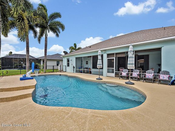 Under contract-accepting backup offers. 72 hour kick out clause in effect until 6/5/2025. Welcome to 4220 Savannah Trail, Merritt Island, Florida! This beautifully updated 4-bedroom, 2-bath home blends modern comfort with laid-back coastal charm. Inside, you'll find a bright, open floor plan featuring newer cabinets, quartz countertops, updated lighting, and sleek stainless steel appliances. The living areas are both stylish and inviting—perfect for everyday living or entertaining. Step outside to your personal paradise: a sparkling pool with a new pump, salt cell, pool light, and Hayward remote system, all framed by fresh landscaping and a tranquil pond view. Enjoy fruit trees, a horseshoe pit, and front-row views of rocket launches from your own backyard. With a 2020 roof and AC, 2022 exterior paint, and brand-new garage door openers with a lifetime warranty, this home is truly move-in ready.