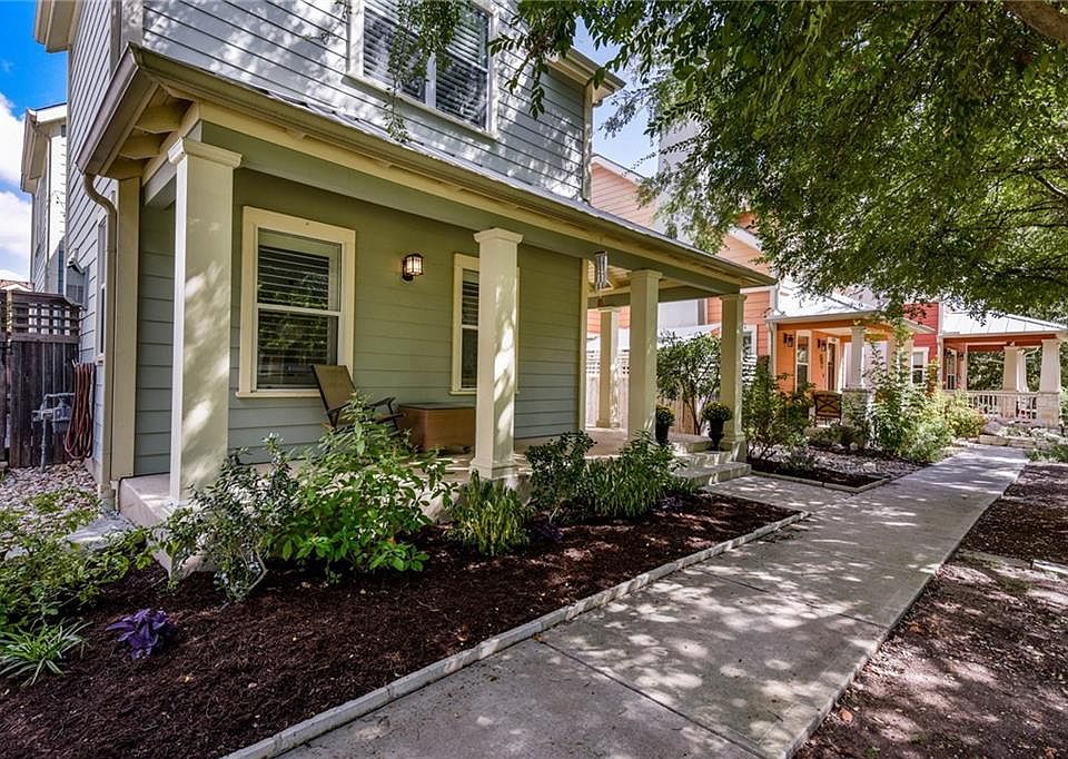 This Garden Court style Craftsman home in the heart of Mueller is a rare find. An expansive front porch opens up to a central courtyard for sharing with friends and neighbors. Built by The Muskin Company, known for thoughtful, eco-friendly designs, this 2012 sq.ft., 3 bed/2.5 bath home offers an open floor plan with attention to detail. Stylish elements include warm concrete and hardwood floors, Haiku ceiling fans, wainscoting and plantation shutters. Nest thermostats and Lutron lighting bring state-of-the-art function. The heart of the home is the spacious kitchen with tons of counter space and storage, connected to a custom mudroom and a workstation perfect for homework. Sliding glass doors lead out to a private deck perfect for barbecues. Whether you enjoy the outdoors from your private deck or the shared courtyard, this home offers the best of both worlds, and requires no weekend yard work! Walk to Mueller Lake Park, the farmer's market, The Thinkery, Alamo & more.