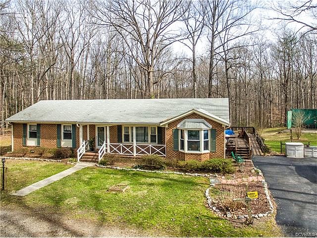 Private brick ranch nestled on 4.95 wooded acres. This all brick home has had recent updates that include; replacement windows, HVAC system, Roof, Kitchen remodel about 10 years ago with beautiful raised panel cabinets and newer Stainless Steel appliances. Conditioned crawl space, Water filter system. This 3 Bedroom plan is spacious and you'll love the private no restriction mature hardwood treed lot. This home also has a eat in Kitchen, Formal Dining & Living Rooms, Cozy Great Room with rough cut pine board walls, ceiling beams and stone fireplace with woodstove. 2 detached storage buildings, huge rear deck, owner currently has Comcast internet. Owner is providing a one year 1st American Home Warranty to the purchaser.