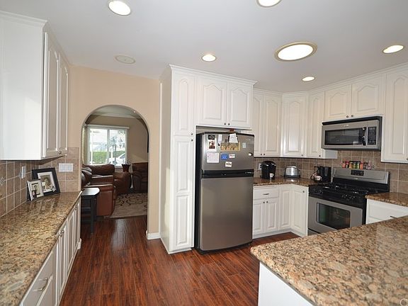 Get into your remodeled home with lots of updates by Christmas. As you walk into the home you will see the lovely arched entry to the kitchen and bedrooms. This home features beautiful wide style laminate flooring thoroughout. The kitchen has been updated with bright white cabinets and granite countertops. Also in the kitchen is a long wall of cabinets with granite countertops perfect for entertaining and serving food and drinks. From your kitchen you look into your dining area with a built in wine rack and sliding glass door opening to your landscaped backyard. The home features two good size bedrooms with mirrored closet doors. The updated bathroom has been done in delightful tiles that look like stone featuring dual shower heads along with glass shower enclosure and a beautiful wood vanity, storage cabinet and lighting. Enjoy your large beautifully landscaped backyard with a covered patio for entertaining family and friends for barbecues and dinners. Backyard features a gorgeous patio light and is landscaped with plants, trees, walking path and additional concrete area at the rear of yard. The concrete area can be used for parking RV or toys. The two car garage is at the rear of the home which has a alley access very convenient. Home is close to freeways, shopping and beautiful beaches are only a few miles away.