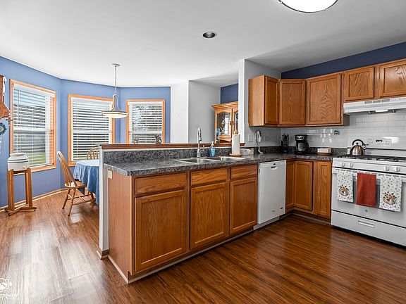 What a gorgeous setting for this wonderfully maintained townhome! Step inside to see all this home has to offer. Foyer with powder room for your guests, soaring ceilings and windows in the family room provide lots of natural light, gas fireplace for those chilly nights, open to kitchen with room for table and stools at the counter. Deck overlooks this gorgeous yard with trees and privacy fencing between neighbors. Upstairs 2 large bedrooms with full shared bath and open hallway overlooking the family room. Full basement with newer sump and battery back up system, ready to finish or keep for storage. Roof 2014, furnace and a/c 13-14'. One car attached garage completes this lovely unit! Chair lift can stay or be removed for your convenience. Home is truly move in ready!