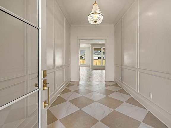 Welcome to this Parade of Homes–featured residence, where every detail is designed to impress. As you enter the foyer, bold design elements immediately set the tone with a striking checkerboard tile entryway and custom wall molding. White oak tile flooring flows seamlessly throughout the home, creating a warm and elegant backdrop.