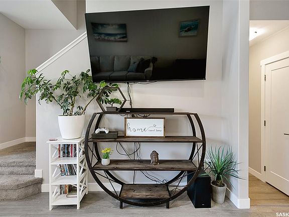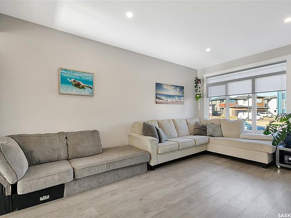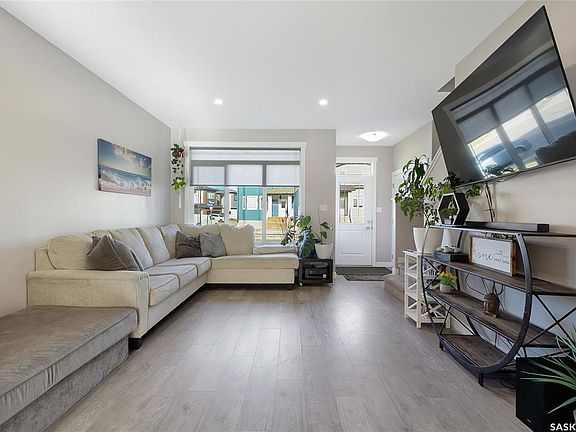 Welcome to modern living in The Towns in this stunning modern townhouse located in the desirable neighbourhood of The Towns. Offering contemporary style and family-friendly function, this 3-bedroom, 3-bathroom home features 1,504 sq. ft. of beautifully finished above-grade living space, complemented by a partially finished basement ready for your personal touch. The main floor immediately impresses with its bright, open-concept layout, featuring durable and stylish luxury vinyl plank flooring throughout most of the space. The heart of the home is the sleek white kitchen, which showcases quartz countertops, a full suite of stainless steel appliances, and a large sit-up island—perfect for casual meals or entertaining guests. The living room is large, but cozy, and you'll also find a convenient 2-piece bathroom on the main floor. Upstairs, you'll find a private and comfortable living space with plush carpeting. This level includes three generous bedrooms, including the spacious primary bedroom with a 4-piece en-suite & walk-in closet, plus the main 4-piece bathroom, providing ample room for a growing family. The partially finished basement offers fantastic potential, awaiting your final design choices to create a custom family room, home gym, or play area. Outside, the fully fenced backyard provides a private and secure space for children or pets, while the two-vehicle parking pad adds off-street convenience. Located in a fantastic, family-favourite area, this home is just a short walk from Jack MacKenzie Elementary School and offers quick, convenient access to all the shopping, dining, and amenities The Greens and Victoria Avenue East have to offer. This home perfectly blends modern finishes, a practical layout, and an ideal location for today’s lifestyle. Call today!
