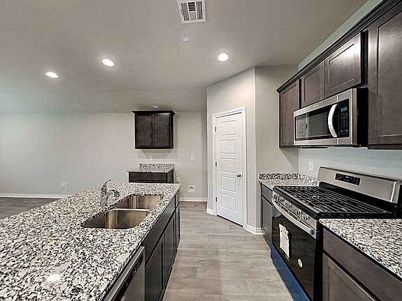 Irrigation systemStainless steel appliancesCovered patioLush green lawnBeautiful granite countertopsSpacious kitchen