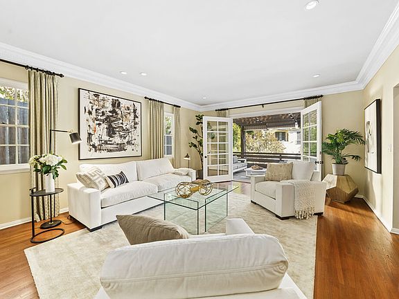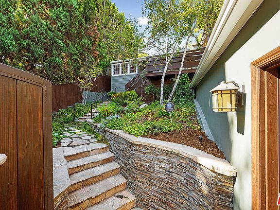 Delightful, warm and turn key....an emotional, beautiful, and updated 1938 Traditional home, located on a quiet cul-de-sac street north of Franklin Ave, in a prime Los Feliz neighborhood. Enter through the tall pedestrian gate, up a short flight of stone steps to a secreted courtyard and enormous deck, all offering unusual privacy. Once inside, the downstairs of the home provides a sunny formal living room with classic details including fireplace and French doors that open to the deck, a large formal dining room, eat-in cooks kitchen with stone counters and stainless-steel appliances, a spacious family/media room with built-in cozy seating that opens to the rear yard, guest bedroom/den with wood paneled walls, vintage stone fireplace, adjacent bathroom and laundry room. Upstairs features two additional bedrooms and a large, renovated period-style bathroom with claw foot tub and large stall shower. Loads of architectural features like double hung wood sash windows, hardwood floors, crown moldings, wainscot paneling, all providing the texture, nuance and richness missing in so many homes. The rear yard offers a variety of terraced gardens and spaces, including a rear patio for bbq and a flat pad at the top of the yard with City views. Detached 2-car garage also included. This is an unusual opportunity to purchase a move-in condition home, tucked away from the City, yet moments from great shopping, coffee houses and cafes, and in the Franklin Ave Elementary School district!