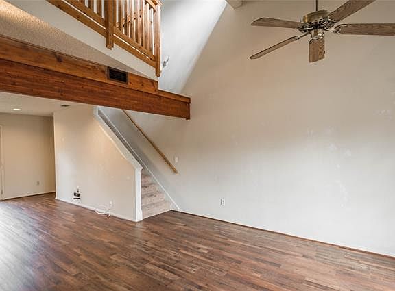 Cozy and serene two story townhome in desirable Flower Mound neighborhood! Large living room with gorgeous wood floors opens to dining room, and kitchen with stainless appliances! Half bathroom downstairs, and large under stair storage closet! Upstairs opens to large game room with utility closet and balcony overlooking amazing views! Master suite with bathroom and walk in closet! Back door opens to wooden deck and private and peaceful backyard with views of acreage and horses! Enjoy relaxing with coffee, and taking in the amazing views! One car attached garage! This home is a MUST SEE!