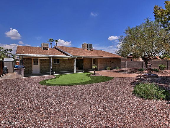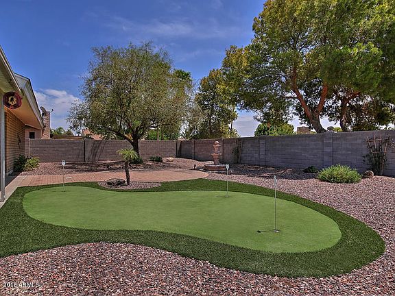 Spacious 3 bed 2 bath home with fresh interior paint. This backyard was designed for entertaining with a putting green, pavers, fountain, & covered patio w/ ceiling fan. Lightly updated kitchen has a mosaic back-splash, and updated white appliances. Family room has a cozy fireplace for those chilly evenings,dining area off of the kitchen, ceiling fans, & master bathroom has access to the backyard. RV gate for those toys, newer water heater, R-22 Insulation added to attic in February. NO HOA!!