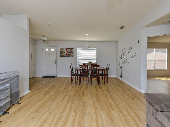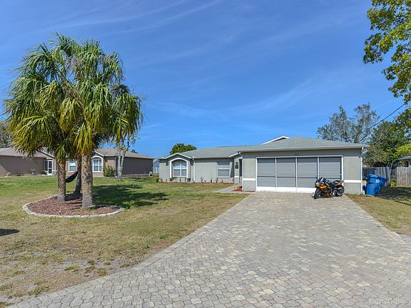 This home boast adorable curb appeal with tropical palm trees and a driveway made of pavers for an added touch. Inside the home you will notice great waterproof luxury vinyl plank flooring throughout the home. The living room is a great size for the family to gather and offers a cathedral ceiling to open up the space. The kitchen is perfectly sized with a large breakfast bar running along the back wall. The split plan in this home really opens it up. The two guest bedrooms are ideally sized with a guest bathroom right outside the hallway for convenience. The master bedroom is graciously sized with ample closet space and a private bathroom which includes a walk-in shower and a walk-in closet. Out back you will be able to unwind on your screened in patio or take in some sun in your large backyard. A wonderful family home. Come view today!