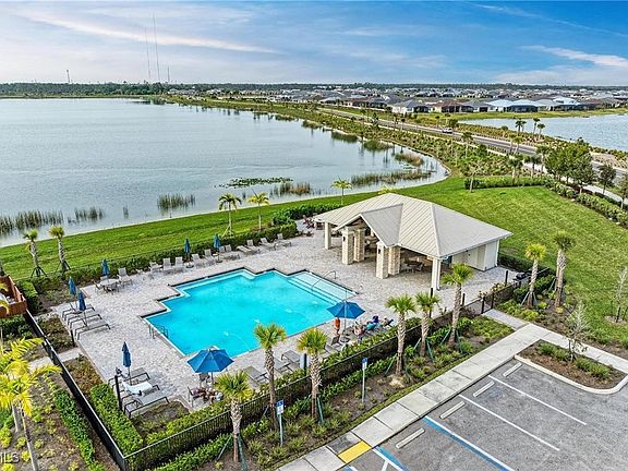 PREMIUM LOT, .23 ACRES IN BABCOCK RANCH ON THE LAKE FRONT. 3 Bedrooms and 2.5 Baths with a 2 Car Extended Garage. Two bedrooms feature a private bath (one in the front of the house, one on the lake side- split bedroom floor plan for ample flexibility and privacy). LAKE VIEWS ARE STUNNING IN THIS HOME. Enjoy peaceful mornings, sipping coffee and watching nature right from your waterfront backyard. The extended 2-car garage offers plenty of room for storage, larger vehicles, a golf cart, or even a workshop, all enhanced by a durable epoxy floor for a clean, polished look and easy upkeep. Additional features include hurricane shutters for peace of mind, upgraded ceiling fans, custom lighting throughout, and solid wood interior doors. Inside, you’ll love the soaring ceilings, quartz kitchen island, stainless steel appliances, and a natural gas range—a chef’s favorite for precise cooking. Edgewater at Babcock Ranch is a gated community of just 168 homes, where residents enjoy exclusive access to a private pool, cabana, and fire pit—a perfect place to relax and connect with neighbors. Beyond Edgewater, all Babcock Ranch homeowners also enjoy two resort-style pools with lodges and countless amenities. Babcock Ranch is designed for an active, connected lifestyle. From dog parks, playgrounds, and sports courts to a new skate park, splash pad, and inclusive areas like Explorers Park, there’s something for everyone. Outdoor lovers can enjoy fishing at Lagoon Park, trails, and community events, while families appreciate the covered basketball and tennis courts at Palmetto Park. Practical features add to the appeal—underground utilities for storm protection, an HOA that includes lawn care, and a location 30 miles inland and 30 feet above sea level, providing extra peace of mind. Shopping and dining continue to grow, with Publix, Starbucks, Ace Hardware, Marshalls, Panera, Ulta, and more just a short golf cart ride away. This home truly has it all—comfort, style, and access to the best of Babcock Ranch. Don’t miss your chance to own in Edgewater! Call today for your private showing. ** Offering Lease to Purchase Options too! **