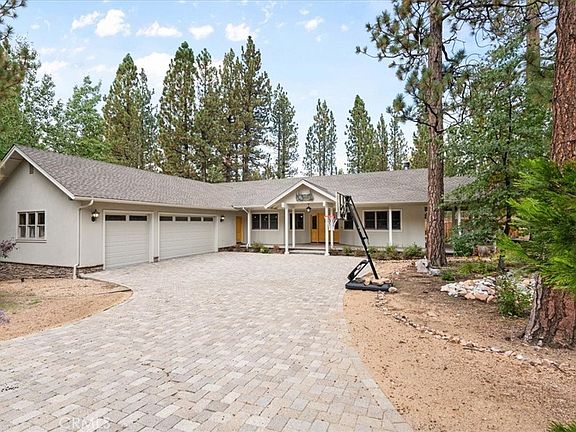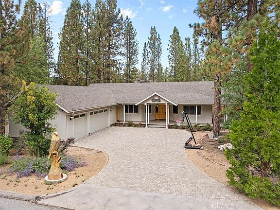 As you wind your way up Heavenly Valley Road, towering pines frame the path and fresh mountain air sets the tone. This gracious single-level home sits on a nearly 12,600 sq ft forested lot—sprawling yet warm, spacious yet inviting. A wide driveway offers extra parking and leads to the attached 3-car garage. Step inside to a light-filled foyer accented with warm wood tones. The formal living room features a cozy fireplace, wood-accented ceiling, and sliding doors opening to the patio. The kitchen is a true centerpiece, with granite countertops, custom backsplash, state-of-the-art appliances, pendant lighting, and a large island with seating. Open to the dining area and family room with its own fireplace, the layout is ideal for gatherings. Offering 4 bedrooms and 3.5 baths, this home blends comfort and function. The primary suite is a retreat with direct backyard access, a large walk-in closet, and a spa-inspired bathroom with jetted tub and dual vanities. Secondary bedrooms are generously sized, including one with a private half bath. A separate laundry room and wood-burning stove add convenience and charm. Step outside to a peaceful backyard with an outdoor fireplace, patio space, and beautiful landscaping—perfect for entertaining or simply enjoying the mountain air. Built in 2006 and immaculately kept, this home combines mountain character with modern amenities. The location is unbeatable—just 3/4 of a mile to Snow Summit and less than 2 miles to the lake, Village, Bear Mountain, golf, and the zoo. Heavenly Valley Estates living at its finest—don’t miss this opportunity to own a true Big Bear retreat.