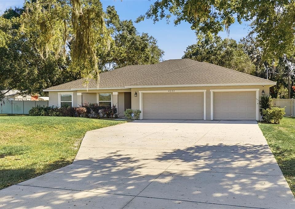 Built in 2023, this thoughtfully designed 5-bedroom, 3-bath Next Generation home offers space, flexibility, and privacy on nearly one acre in peaceful rural Lakeland. The open-concept split floor plan features laminate flooring throughout and a central living area that connects easily with the kitchen and dining space—ideal for everyday living and gatherings. The attached in-law suite provides comfort and independence with its own living area, kitchenette, walk-in closet, full bath, private entrance through the 3-car garage, and separate back patio access. Outdoor features include an above-ground pool with deck, a garden area, and a spacious yard ready for recreation or future projects. The property includes a security system, well, and septic, and has no HOA restrictions. Nearby are shopping and dining options, including Lakeside Village with boutique stores, restaurants, and family-friendly amenities.