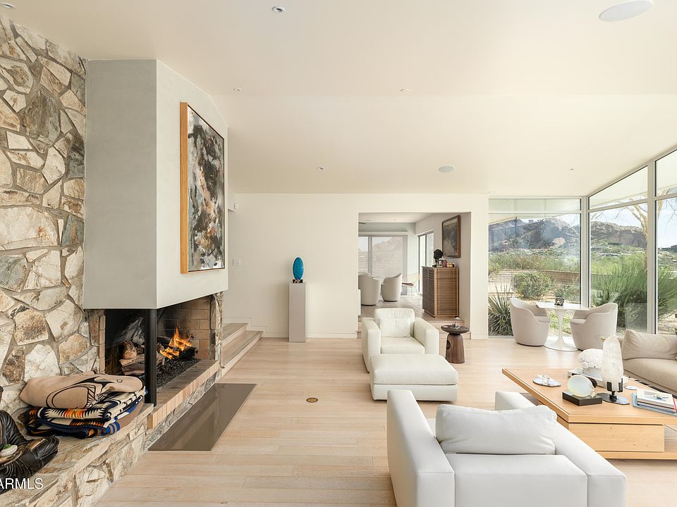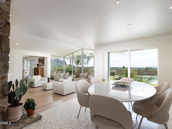 Mid-Century Modern Masterpiece in the Heart of Paradise Valley! Discover the pinnacle of mid-century modern living, nestled in the hills of Paradise Valley with sweeping, panoramic views; from Camelback Mountain to Papago Peaks, South Mountain, downtown Phoenix, Piestawa Peak, and the North Mountain Preserve. This architecturally significant residence has been meticulously renovated to meet modern standards while preserving its timeless design. Expansive walls of glass frame stunning desert and city vistas, bathing the home in natural light. Elegant terrazzo and hardwood floors flow throughout a thoughtfully designed split floor plan, offering both privacy and functionality. The luxurious primary suite is a private sanctuary, featuring dual bathrooms and dual dressing rooms with custom built-in cabinetry. Adjacent to the sleek, updated kitchen are a cozy TV room and dedicated home office; perfect for work or relaxation. On the opposite side of the home, you'll find two additional bedrooms, a full bath, and a spacious laundry room. A detached garage provides covered access to the home and includes a fully equipped casita with its own bathroom, ideal for guests, a studio, or flex space. Step outside to your own private resort: a sparkling diving pool, shaded cabana, multiple terraces, and low-maintenance landscaping create a serene outdoor retreat; all set against the backdrop of some of Arizona's most iconic views. This is truly a one-of-a-kind property where classic design meets modern luxury.