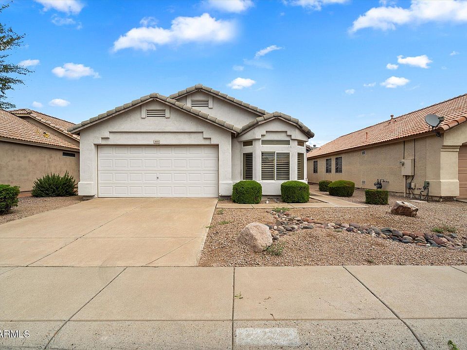 Welcome to this beautiful home featuring an open concept great room floor plan perfect for entertaining & everyday living. The functional kitchen includes an island, cozy breakfast nook, & a spacious walk-in pantry. Fresh, like new paint inside & out, paired w/ plantation shutters t/o, create a bright & welcoming atmosphere. The large primary suite offers a relaxing retreat, while the 2nd bedroom is generously sized with its own walk-in closet & bathroom. Step outside to enjoy the sparkling play pool, covered patio, & mature citrus trees ideal for both relaxing & entertaining. Addl highlights include a 2 car garage w/ custom cabinets & a convenient mud sink. With easy access to the 101 and 51 freeways, you'll be just minutes from Desert Ridge & the newly reimagined Paradise Valley Mall.