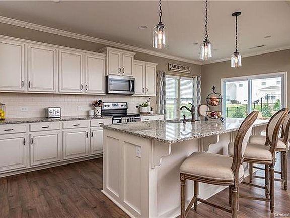 Large front porchExtended brick paver patioLaminate hardwoodCrown moldingUpgraded lightingOver sized center islandTrees surrounding the perimeter