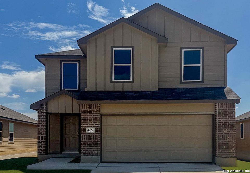 Welcome to The Davis, a two-story home located at Preserve at Medina in Von Ormy, TX. This floor plan offers 2 classic exteriors and 2-car garage. Inside this 3 bedroom, 2.5 bathroom home, you'll find 1489 square feet of living space. The entry opens to a gourmet kitchen before flowing into the dining and family room with an open floorplan concept. The kitchen includes quartz counter tops, quality cabinetry, stainless steel appliances, large breakfast island, and pantry. Head up the stairs to find the main bedroom suite, all secondary bedrooms, the laundry room, and a full bath. The Davis layout is perfect if you love entertaining downstairs and relaxing upstairs. The private main bedroom features an attractive ensuite with quality cabinetry. A spacious tiled walk-in shower and large walk-in closet provide all the space and convenience you need. Additional features of The Davis floor plan include sheet vinyl flooring in entry, living room, and all wet areas, quartz counter tops in all bathrooms and HOME IS CONNECTED base package. Using one central hub that talks to all the devices in your home, you can control the lights, thermostat and locks, all from your cellular device.