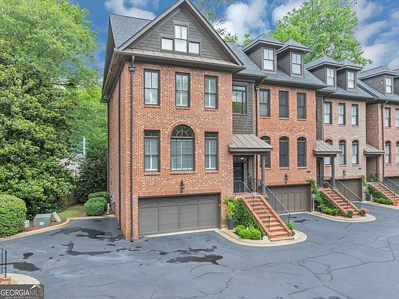 This expansive brownstone has the largest floorplan in the community and is filled with charming custom designs and finishes. Walk to Chastain and over a dozen restaurants and shops. 4 bedrooms, 4 1/2 baths with a loft. Beautifully remodeled with an elevator and a 2 car garage. Plantation shutters, custom hardwoods, ceilings, and designer fixtures throughout! Two fireplaces and an abundance of outdoor living space with electric awning. Custom closets, marble, quartz, built in bookshelves and an end unit. Everything has been replaced and designer quality. A must see in one of the most desired communities in the area.