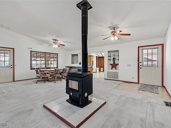 Wonderful opportunity to make this home your dream home! 3BR/2BA/Den Ranch Style Home on Estate sized .65 acre lot. NO HOA!! Unique wood-burning Pot Belly Stove in the Living Room! Home includes a hard to find 2200 sf unfinished & plumbed basement ready for you to finish as you like! Also includes a Man Cave Bar! Over 4500 S.F with the basement! Newer A/C and ample parking. Plenty of room for Horses (near The Equestrian Park), Pool AND Tennis/Pickleball/Basketball Courts, etc. Easy access to Allegiant Stadium, Harry Reid Airport and all that Las Vegas and The Strip has to offer.