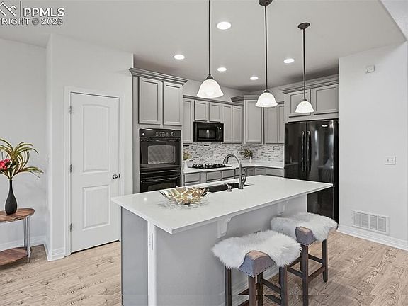 . This is the one! Peaceful starry skies! Dreamy Farmhouse Retrea, 4 car garage, recently renovated kitchen, new interior & exterior paint! Sip your morning brew on a private covered deck gazing over lush greens of Spring Valley Golf Course. Watch the sky transform into a canvas of colors, best enjoyed from your cozy patio with a fire pit crackling nearby. Nestled on a cul-de-sac, this gem offers the perfect blend of privacy and community vibes. Open-concept design boasts soaring two-story ceilings, reclaimed barnwood accents, and a flood of natural light that dances through every room. Gourmet kitchen featuring sleek grey maple cabinetry, quartz countertops, a gas range, double oven, and a spacious island with a breakfast bar. Family room invites you to unwind by the cozy fireplace under cathedral ceilings. Main-floor owner's suite is a sanctuary with wood flooring, quartz countertops, walk-in closet that's practically a room of its own. Main floor office with 1Gig WiFi has you covered. Upstairs, discover 3 generous bedrooms PLUS loft—perfect for guests or your latest creative endeavor. Car enthusiasts and hobbyists will appreciate the 4-car garage with workshop space & 220v EV charger (electric vehicle). 3 sided fenced yard with full perimeter invisible fence ensuring your furry friends can roam safely. Peace of mind with recent upgrades like new hail/impact-resistant Class 4 roof (2024) saves hundreds on insurance and new furnace (2021). 0.84 acre lot, mature landscaping, covered patio & scenic views. Turnkey! Peaceful country living & convenience to amenities-large scale grocery & hardware in Elizabeth 12, Parker 17 min. Full restaurant at Spring Valley Golf Course clubhouse just 5 min. Southlands 20, DIA 50, DTC 40 min.