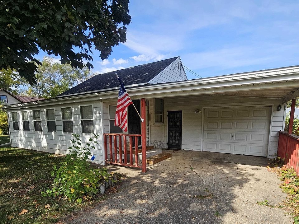 Don't miss the chance to own this charming two bedroom ranch with extra living space. First floor laundry, new carpet, updated bathroom all with a Cinch home warranty for buyers peace of mind! County taxes and new roof installed in 2025. Relax on the covered back patio, overlooking the spacious fenced in yard. Oversized tandem garage, complete with workshop & plenty of storage!