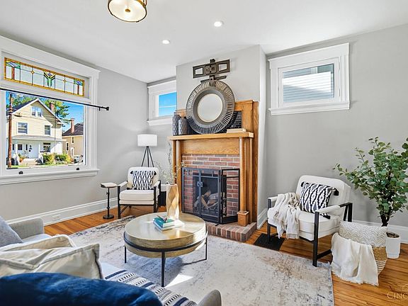 This beautifully renovated 3-story home perfectly combines classic Oakley character with today's modern updates. Offering 4 bedrooms and 1.5 baths, the home features hardwood floors, 9-ft ceilings, exposed brick accents, and a rare 2-car garage. The 2023 kitchen renovation shines with quartz countertops, new appliances, and seamless flow into the dining and living areas. A freshly retiled fireplace with a new gas ventless insert anchors the first floor, while the updated upstairs bath offers quartz counters and stylish finishes. Recent upgrades include fresh paint, new carpet, lighting, Gilkey windows, and a smart thermostat. Practical updatesroof & gutter care, enhanced electric to patio/garage, HVAC tune-up, and a new washer/dryeradd peace of mind. Step outside to a private fenced yard with a paver patio, built-in fire pit, and lush landscapingperfect for entertaining or relaxing. All this, just steps to Oakley shops, Factory 52, and the Wasson Way trail!