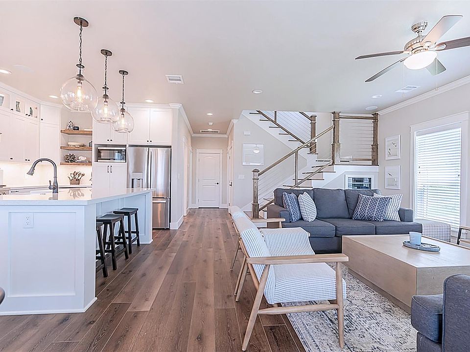Experience coastal living at its finest in the first home to be built in the beautiful new Bella Terra community on Galveston’s West End. Designed for modern comfort and relaxation, this stunning 4-bed, 2.5-bath retreat offers bay and beach views from its spacious decks. The open-concept layout features luxury vinyl plank flooring, quartz countertops, stainless-steel appliances, custom shaker cabinetry, and a stylish inlay backsplash. Enjoy seamless indoor-outdoor living with an expansive covered deck—perfect for entertaining or soaking in the island sunsets. Just minutes from the beach and bay access, this home captures the essence of coastal tranquility with a touch of sophistication. Buyer selections available during pre-construction for color palette and finishes.