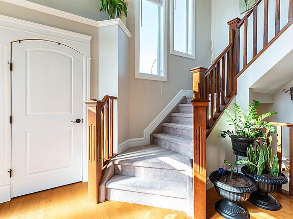 Welcome to this very well maintain 2 story in BRINTNELL.WITH OVER 3000 SQ.FT of living space. A large bright foyer is complimented with a beautiful oak staircase, accent walls and hardwood floors. Bright open concept featuring the kitchen with breakfast bar, a spacious dining area with loads of cabinets and counter space. A huge living room WITH GAS fireplace. A home office, 2pc bath, mud room & LAUNDRY complete the main level. There are three spacious bedrooms starting with a luxurious primary suit with a 4pc ensuite and built in cabinets. 2 more large bedrooms and 4pc bath, a massive bonus room with vaulted ceilings and a book case secret entrance. Finished bsmt includes a LARGE rec room w/WET BAR, a 4th bed and 4pc bath. Step outside to your own private backyard oasis with a spacious deck, pergola, fire pit, an oversized shed siting on a large pie shape lot. Upgrades which include newer paint, roof (24'), Culligan water softener, and a new XL HWT (24'). OVERSIZE HEATED GARAGE. Make this home your own.
