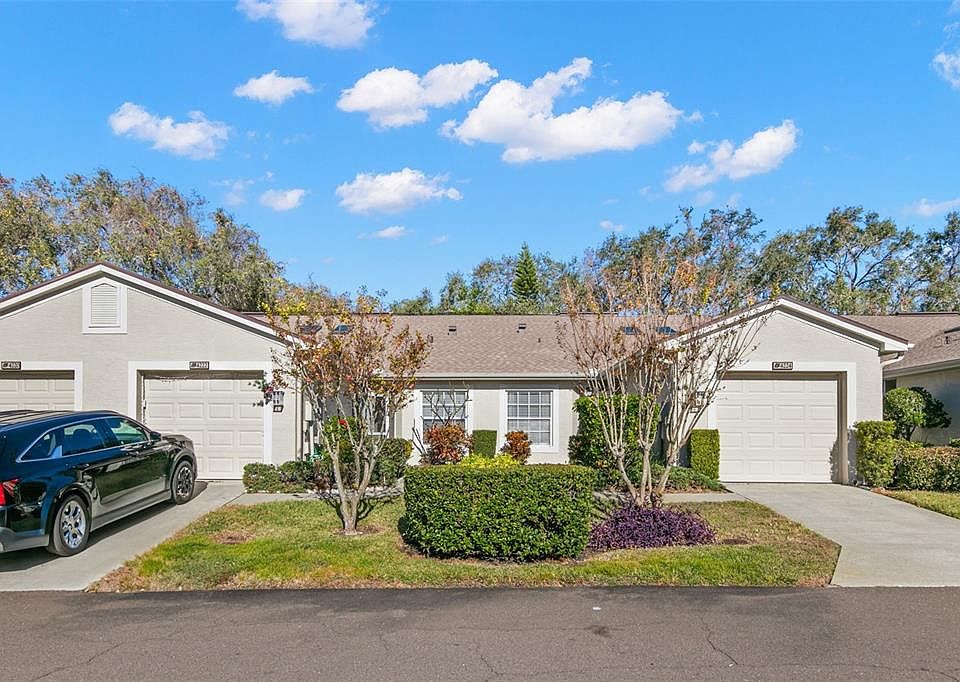 NEW ROOF... DESIRED COMMUNITY... SPLIT PLAN…& SOLD FULLY FURNISHED! Welcome home to this turnkey 2-bedroom / 2 bathroom Villa with a split floor plan, 1 car attached garage, & indoor utility room! Located in the highly desired Glen Eagles community, buyers will loooove the beautiful mature trees and winding roads leading to the Courtyards 2 Entrance. The home has wonderful natural light, with two new skylights (with new remote-controlled solar blinds) in the kitchen, vaulted ceilings which give a spacious feel to the living area, and sliding glass doors that lead out to a fully enclosed lanai. The expansive kitchen features a center island along with stainless steel appliances, large pantry and breakfast nook. Primary bedroom features a walk in closet and a en-suite bath with a shower and soaking tub. New Shingle Roof in 2024. Includes: Washer/Dryer, Appliances, Florida room, Craftmatic Bed in Primary, SOLD TURNKEY WITH ALL FURNISHINGS INCLUDED. The community offers a gorgeous pool with bathrooms and is located near the beautiful Innisbrook Golf Resort where Social / Golf / Tennis / Pickleball Memberships are available. Close proximity to downtown Palm Harbor and Tarpon Springs. Flood zone X. Come check out this beautiful home!